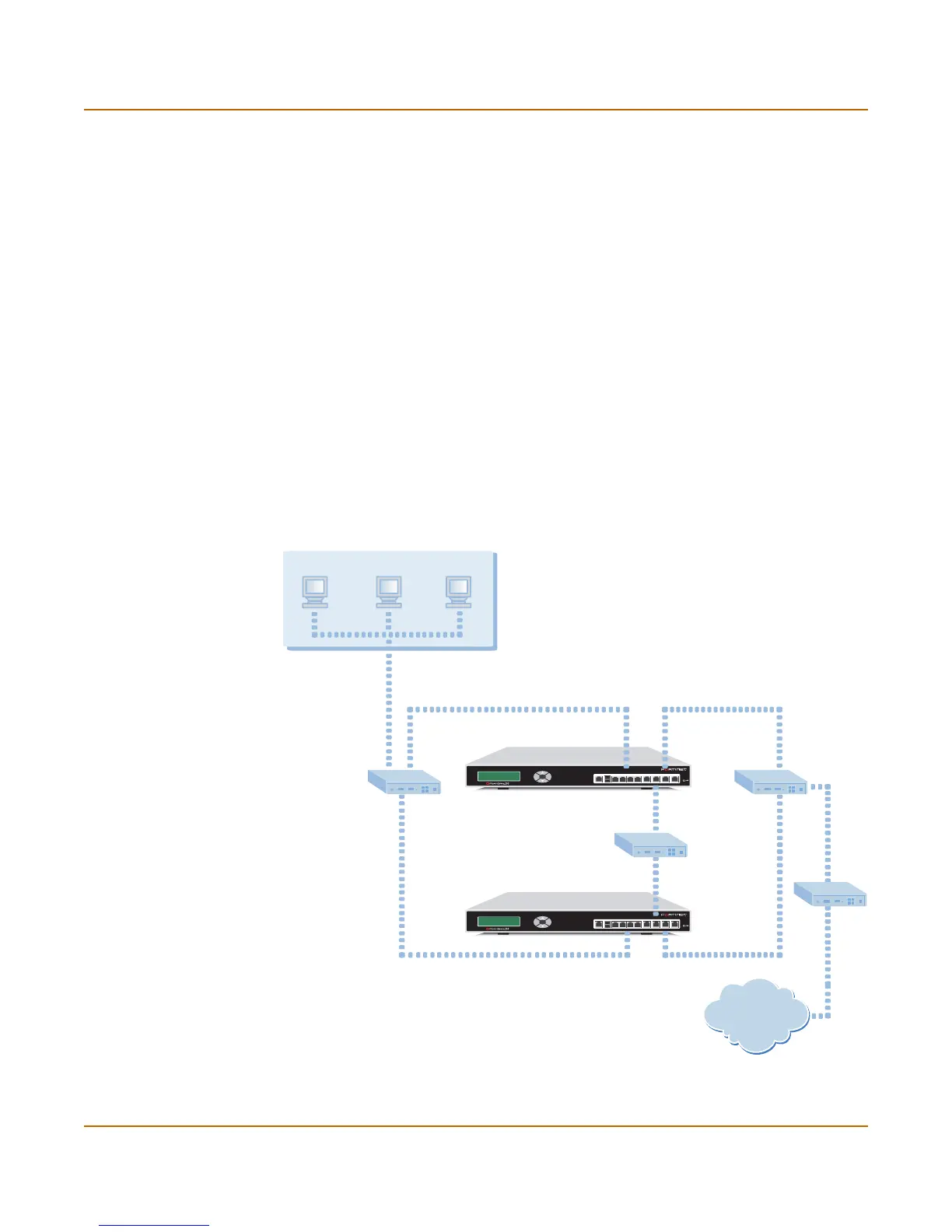 • Connect the internal interfaces of each FortiGate unit to a switch or hub connected