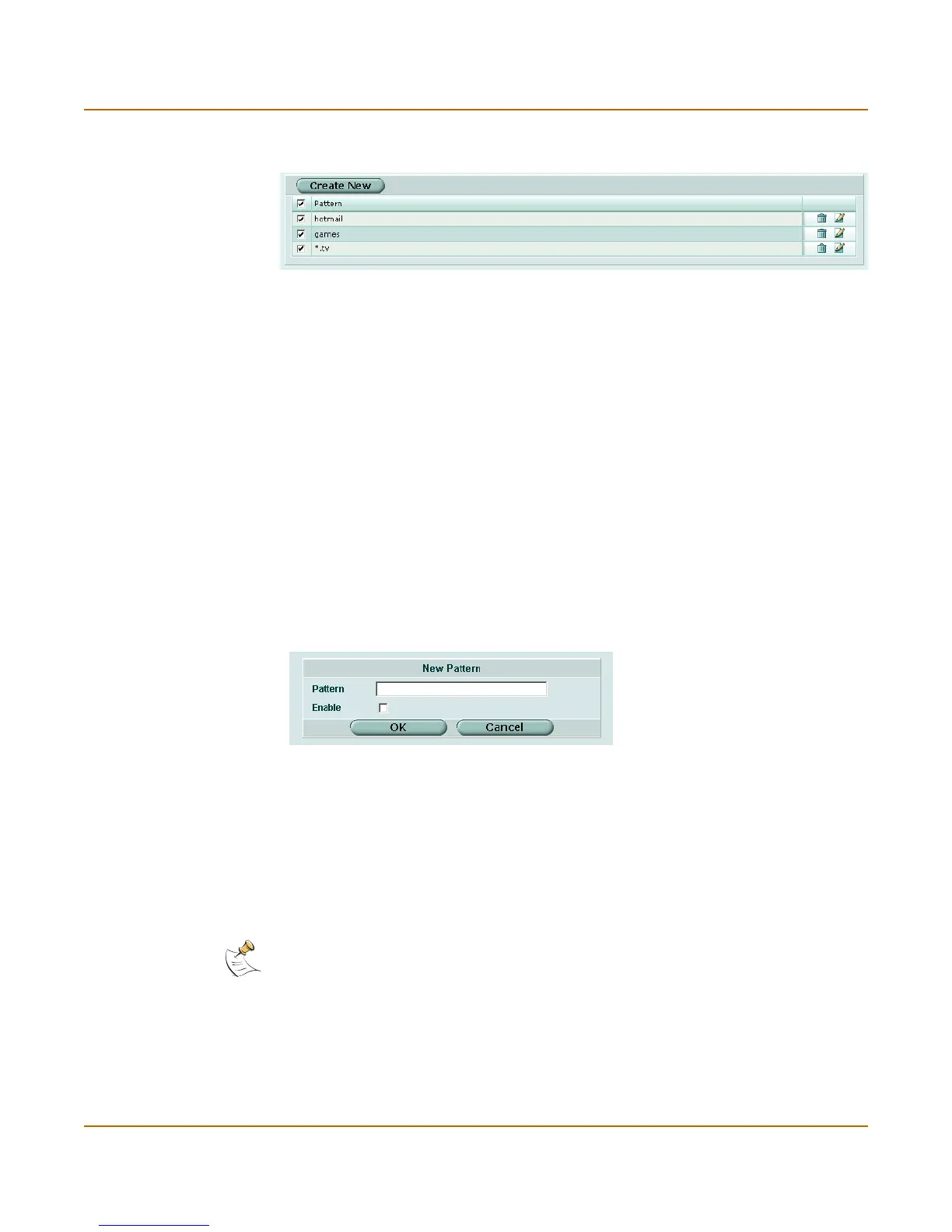 Create New Select Create New to add a new pattern to the web pattern block list.