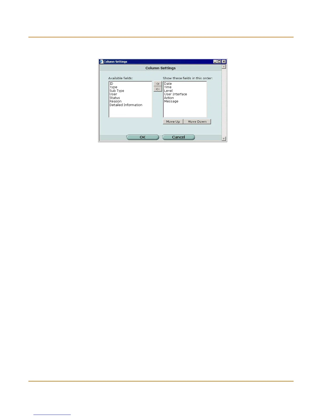 -> Right arrow button. Select to move selected fields from Available fields list to