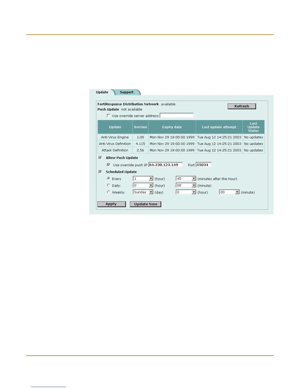 Whenever the FortiGate unit runs a scheduled update, the event is recorded in the