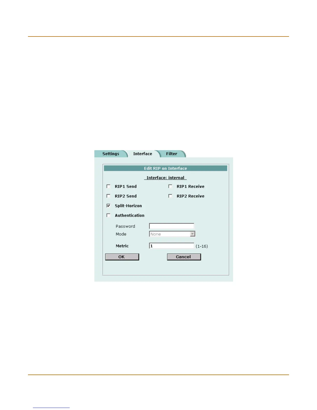 Mode Defines the authentication used for RIP version 2 packets sent and received