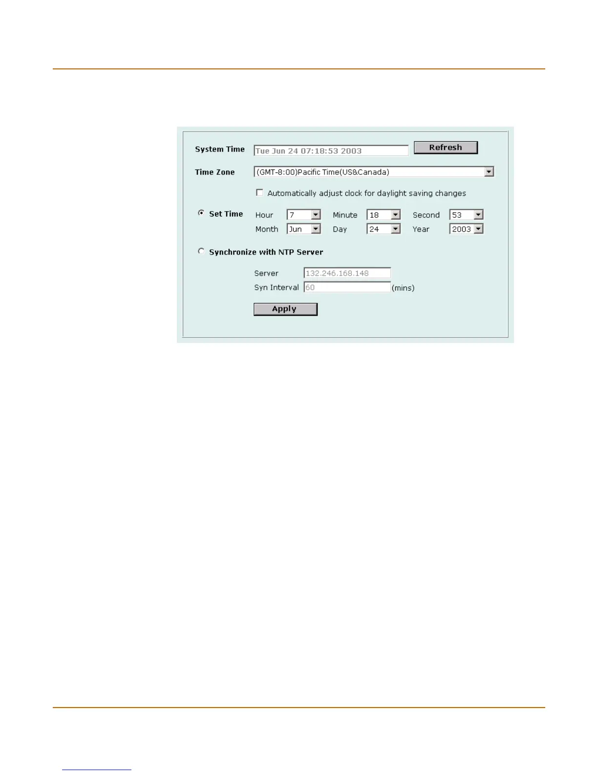 Figure 36: Example date and time setting