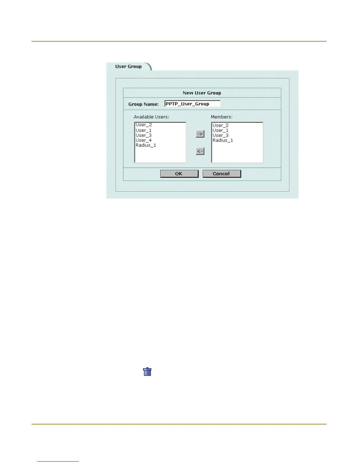 7 To remove users, RADIUS servers, or LDAP servers from the user group, select a