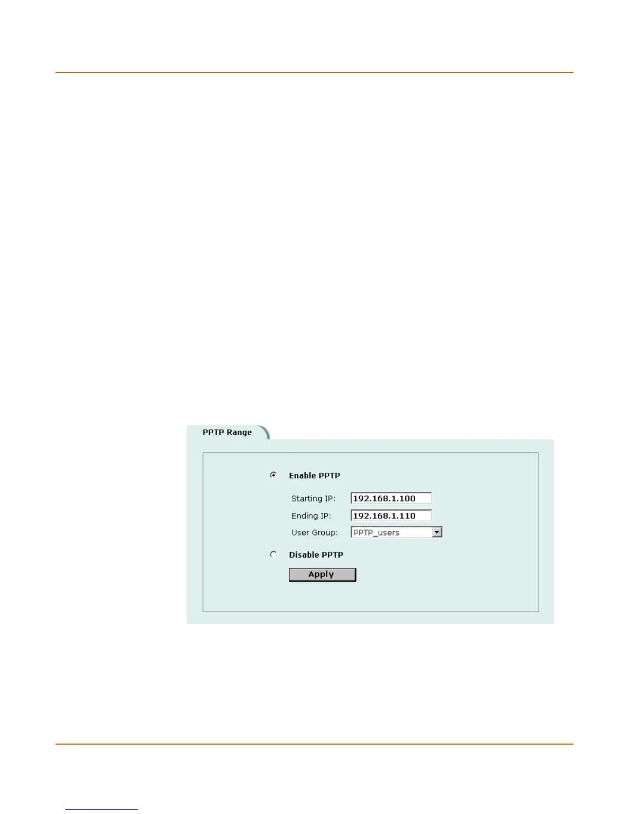 3 Enter the Starting IP and the Ending IP for the PPTP address range.