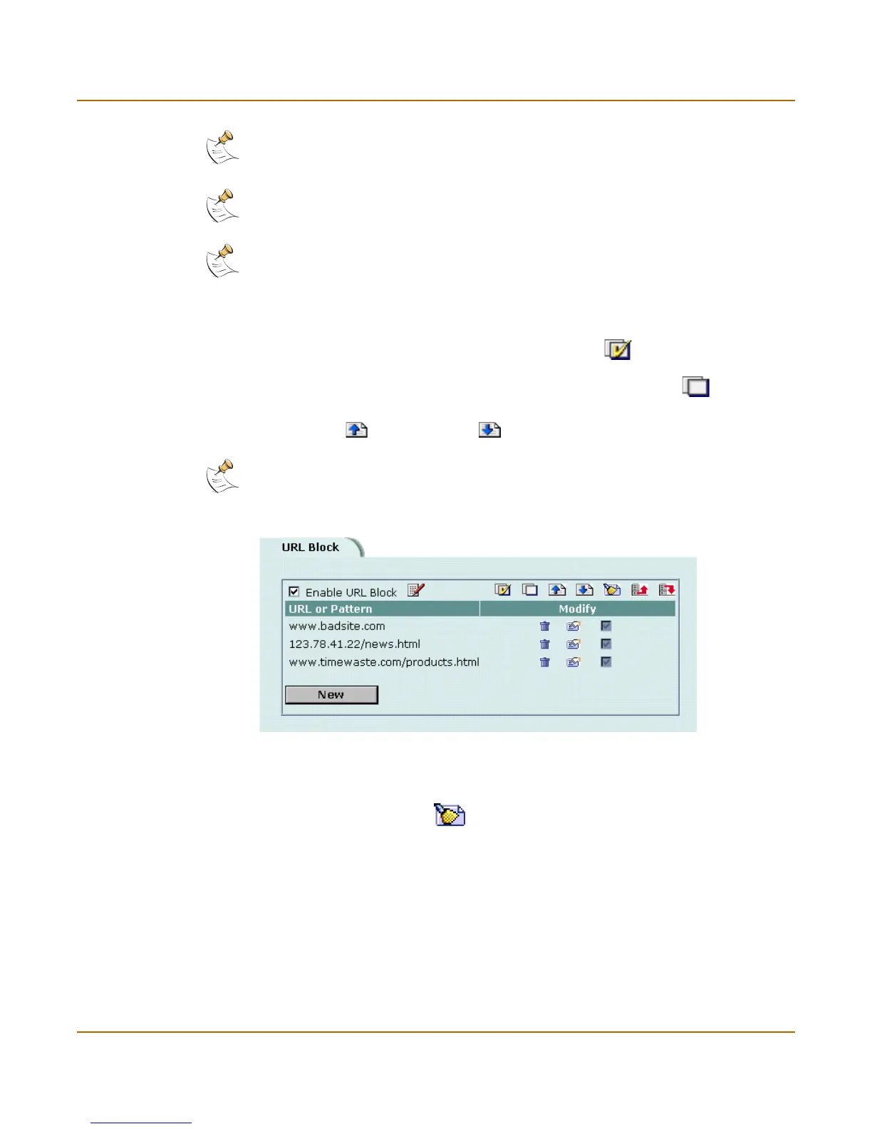 expressions in the Web Pattern Block list to create URL patterns to block. See “Configuring
