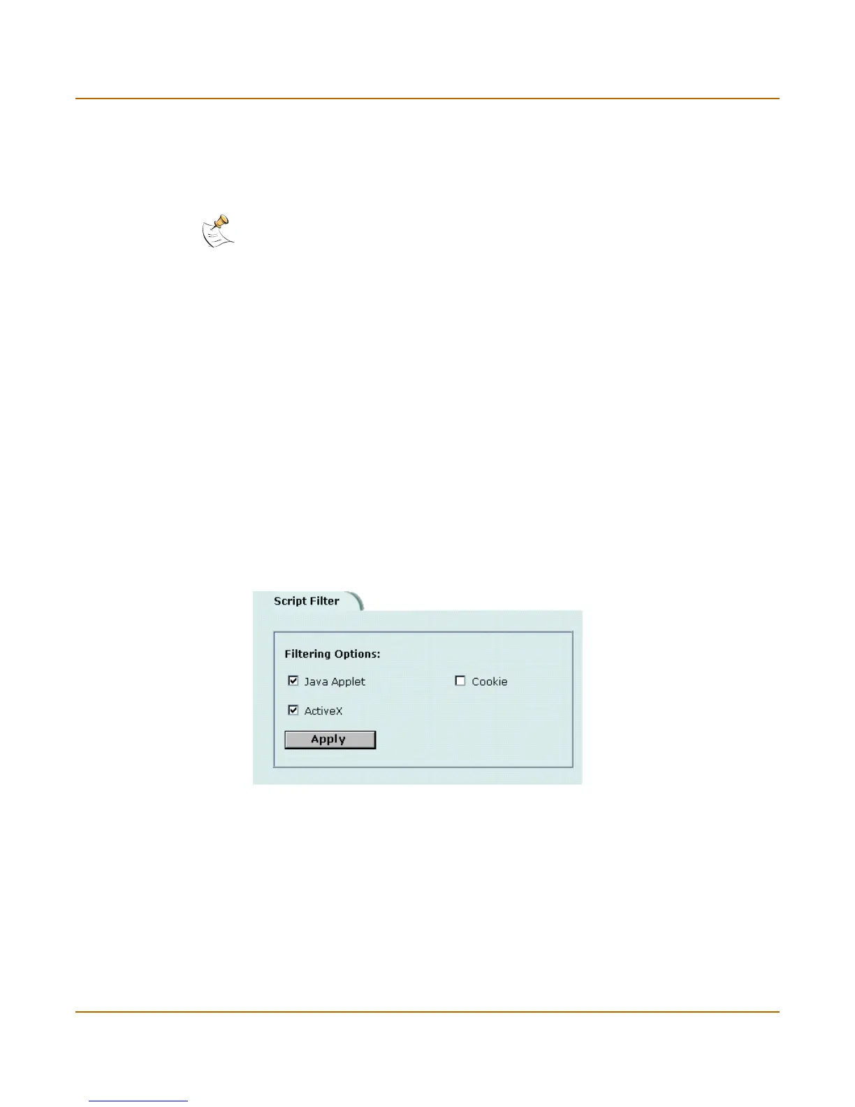 Figure 74: Example script filter settings to block Java applets and ActiveX