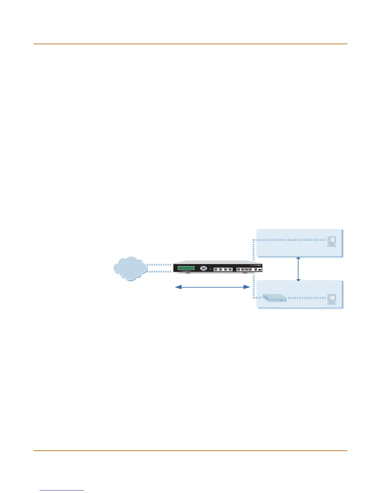 an existing firewall or behind a router. The FortiGate unit performs firewall functions as