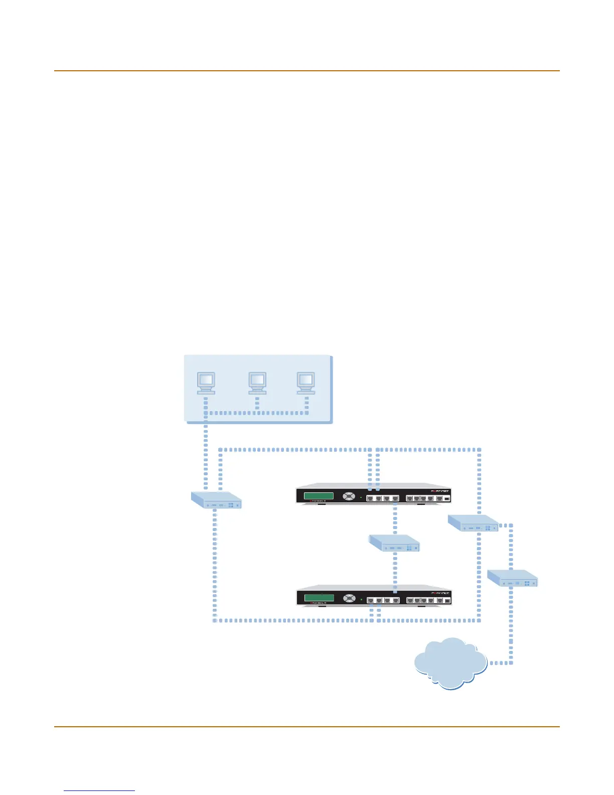 • Optionally connect the DMZ interfaces of each FortiGate unit to a switch or hub