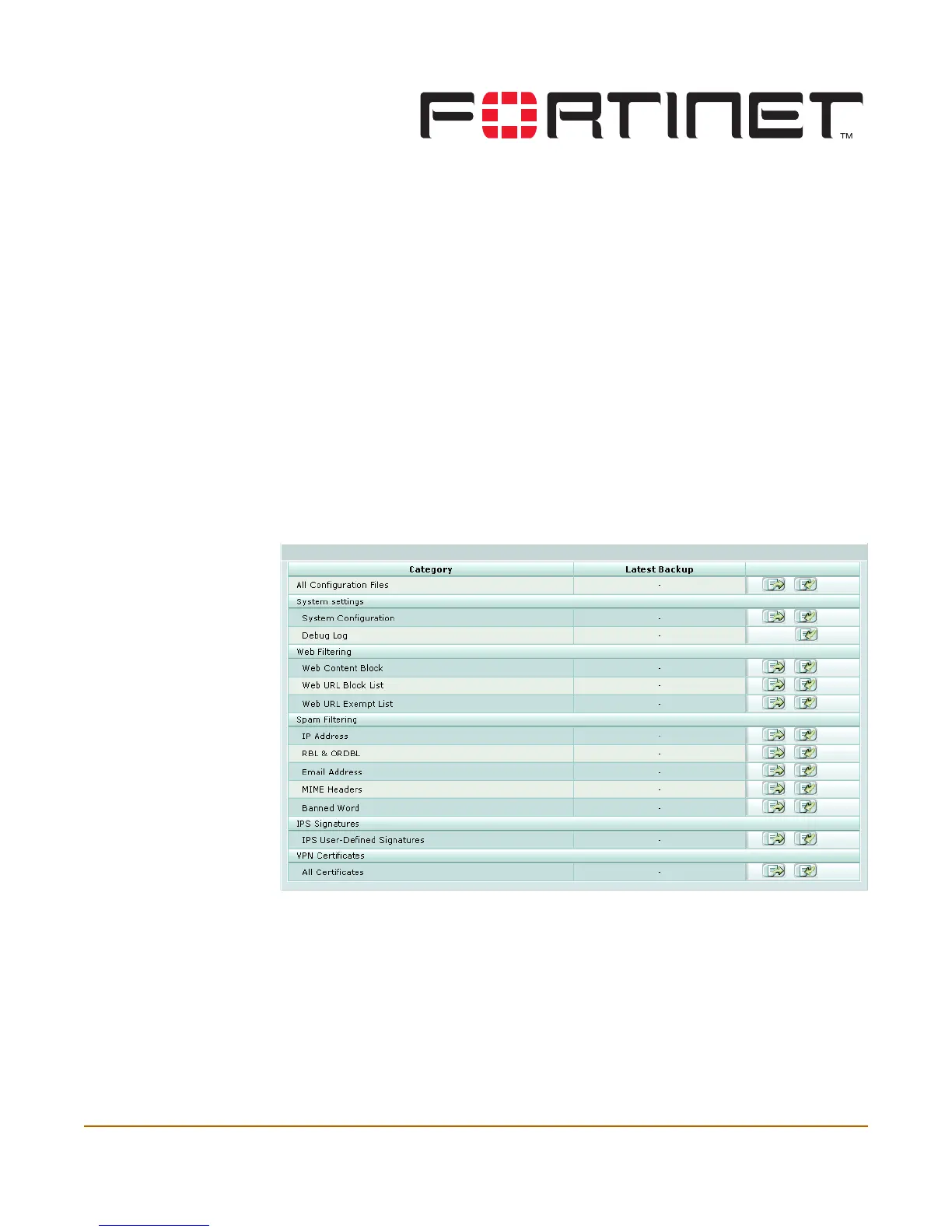You can back up system configuration, VPN certificate, web and spam filtering files to