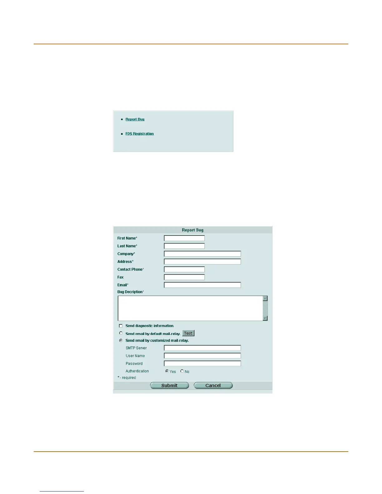 You can use the Support page to report problems with the FortiGate unit to Fortinet