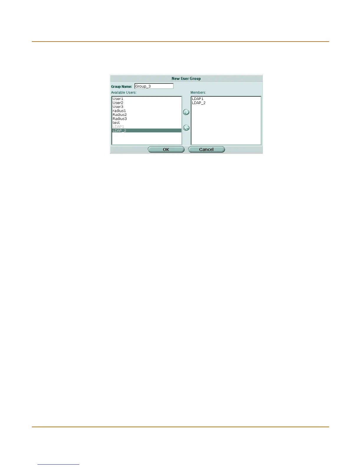 7 To remove users, RADIUS servers, or LDAP servers from the user group, select a