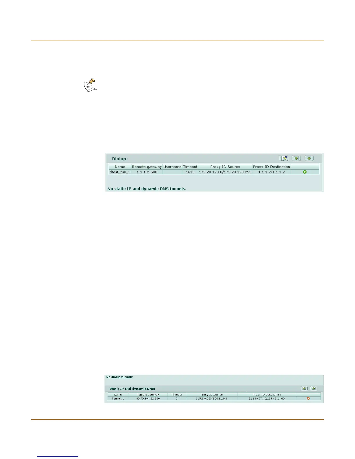 The dialup monitor lists status information for all active dialup VPN tunnels. The