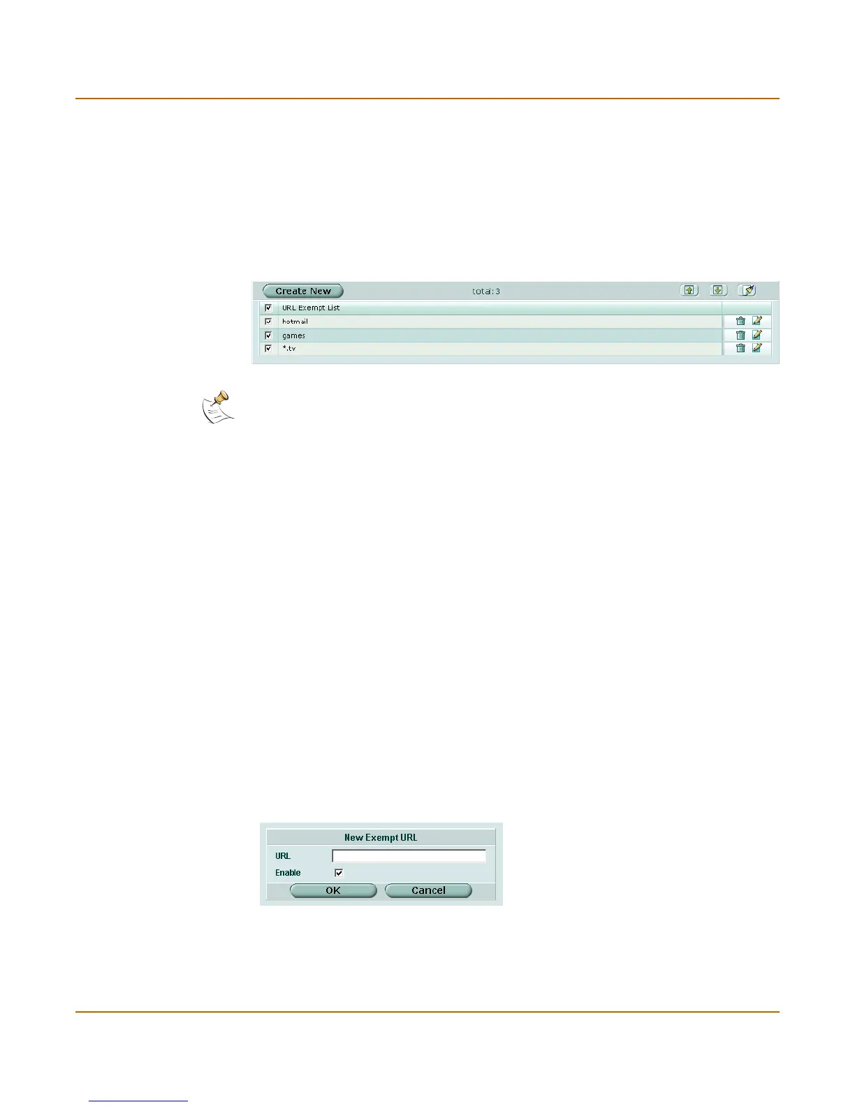 Figure 165:Sample URL exempt list