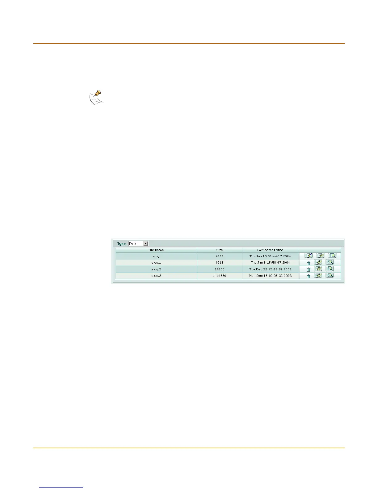 View icon. Display the log file through the web-based manager.