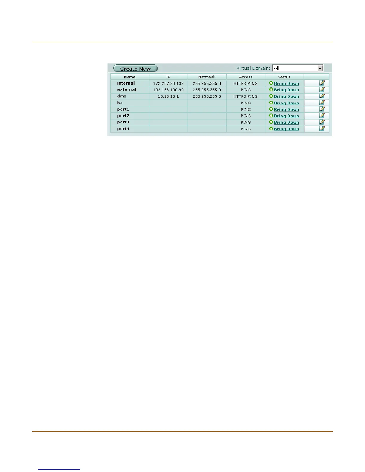 Virtual Domain Select a virtual domain to display the interfaces added to this virtual domain.