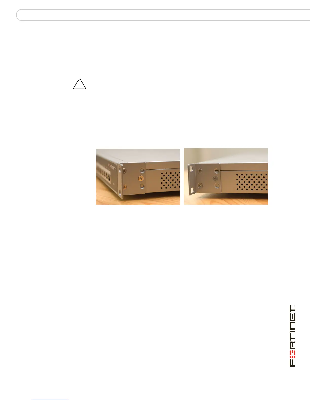 front portion of the FortiGate unit. Ensure that the screws are tight and not loose.