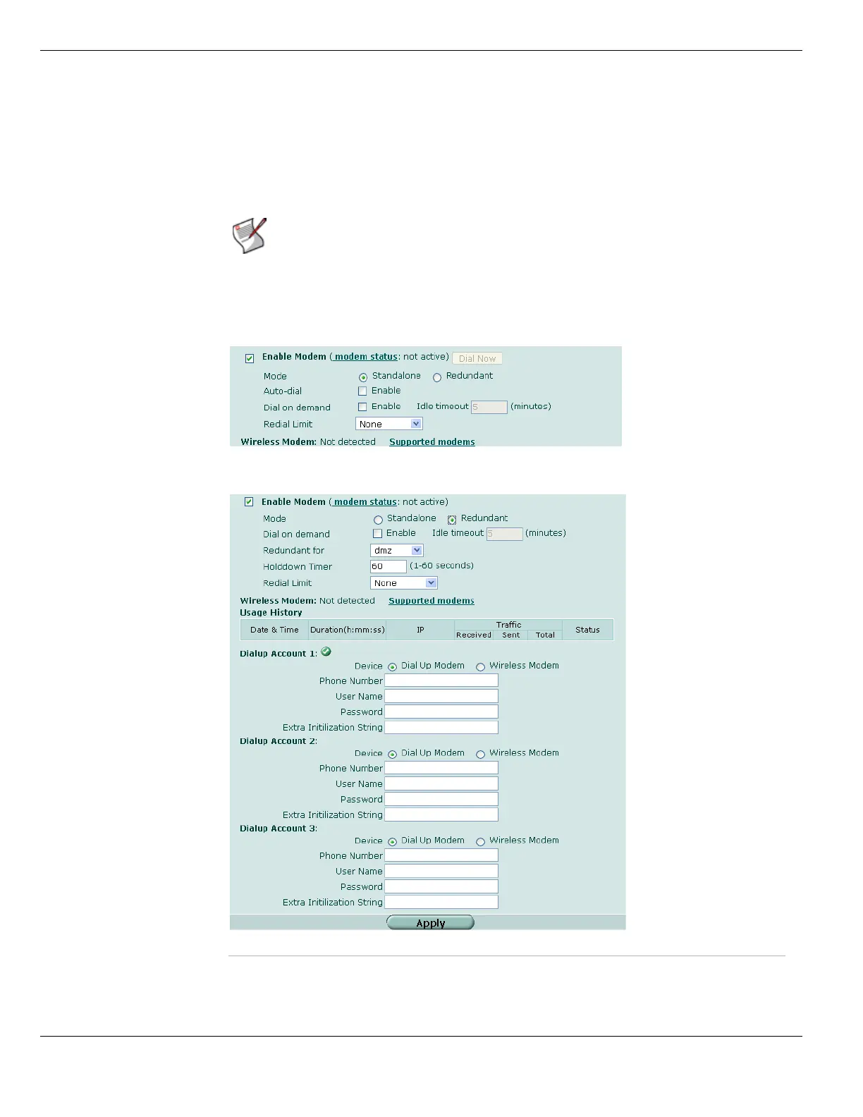 Modem status Modem status can be: not active, connecting, connected, disconnecting,