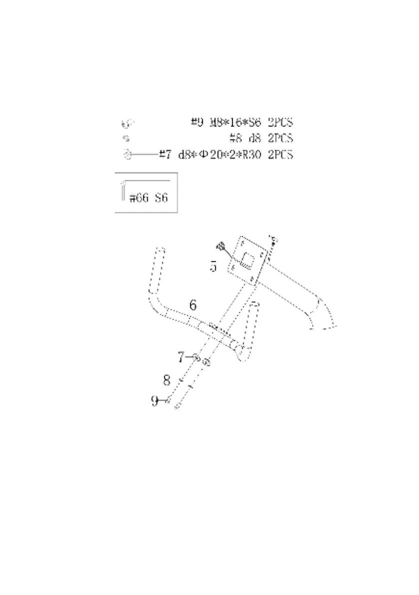 Attach the Handlebar (6) to the Handlebar Post (5) with x2 Screws (9), x2 Spring Washers (8)