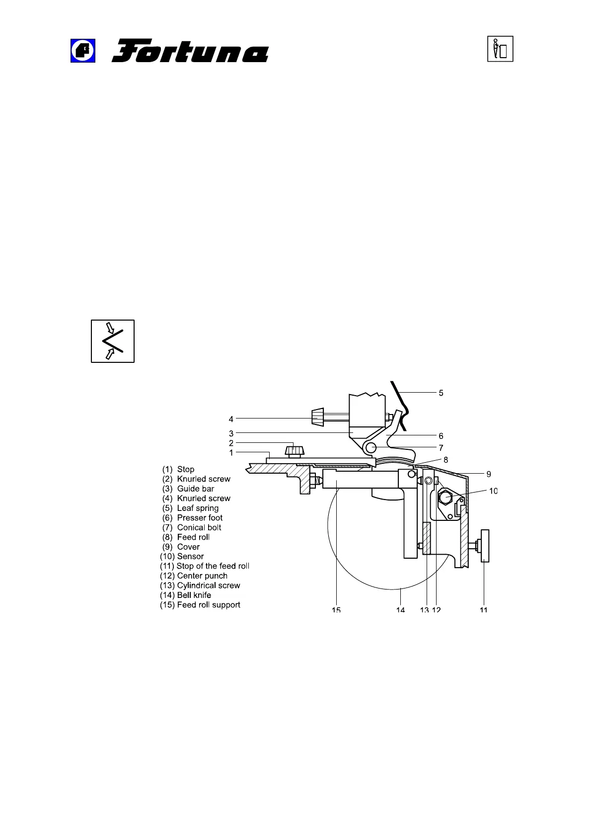the adjusting screw (7). Please refer to , Figure 9: Details of the machine –