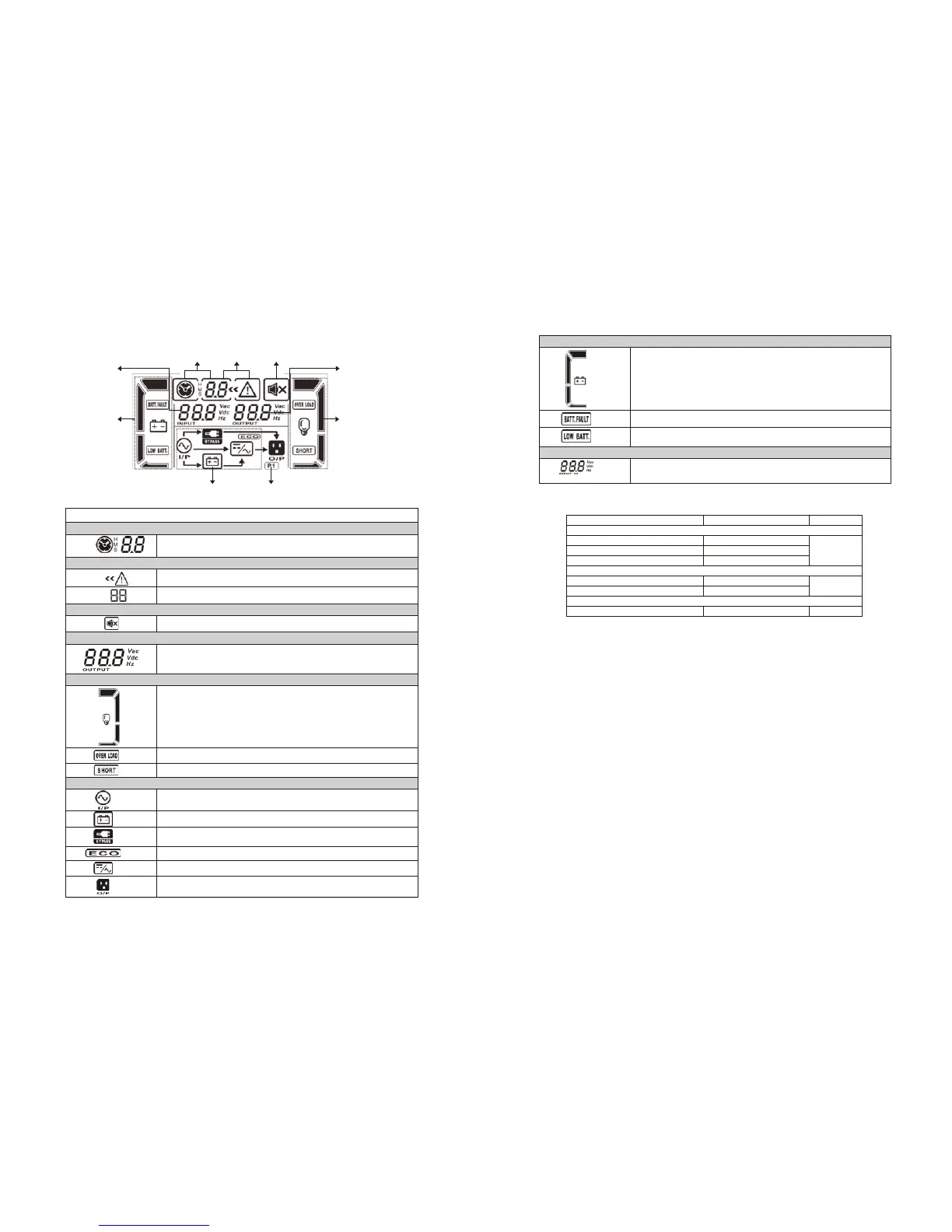 VAC: output voltage VDC: battery voltage Hz: frequency