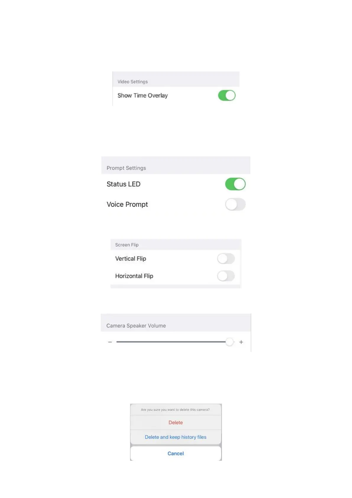 You can click the delete Camera button to delete the camera from the app, or delete and keep history