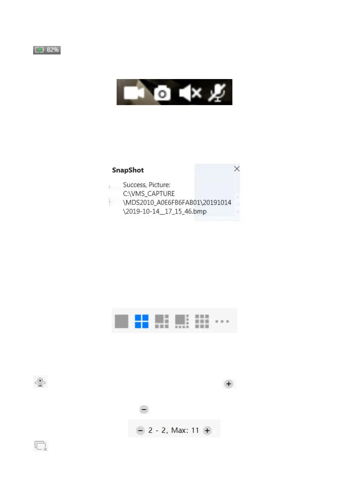Sound ----- Click the icon then you will hear sound captured by the camera's built-in microphone. You