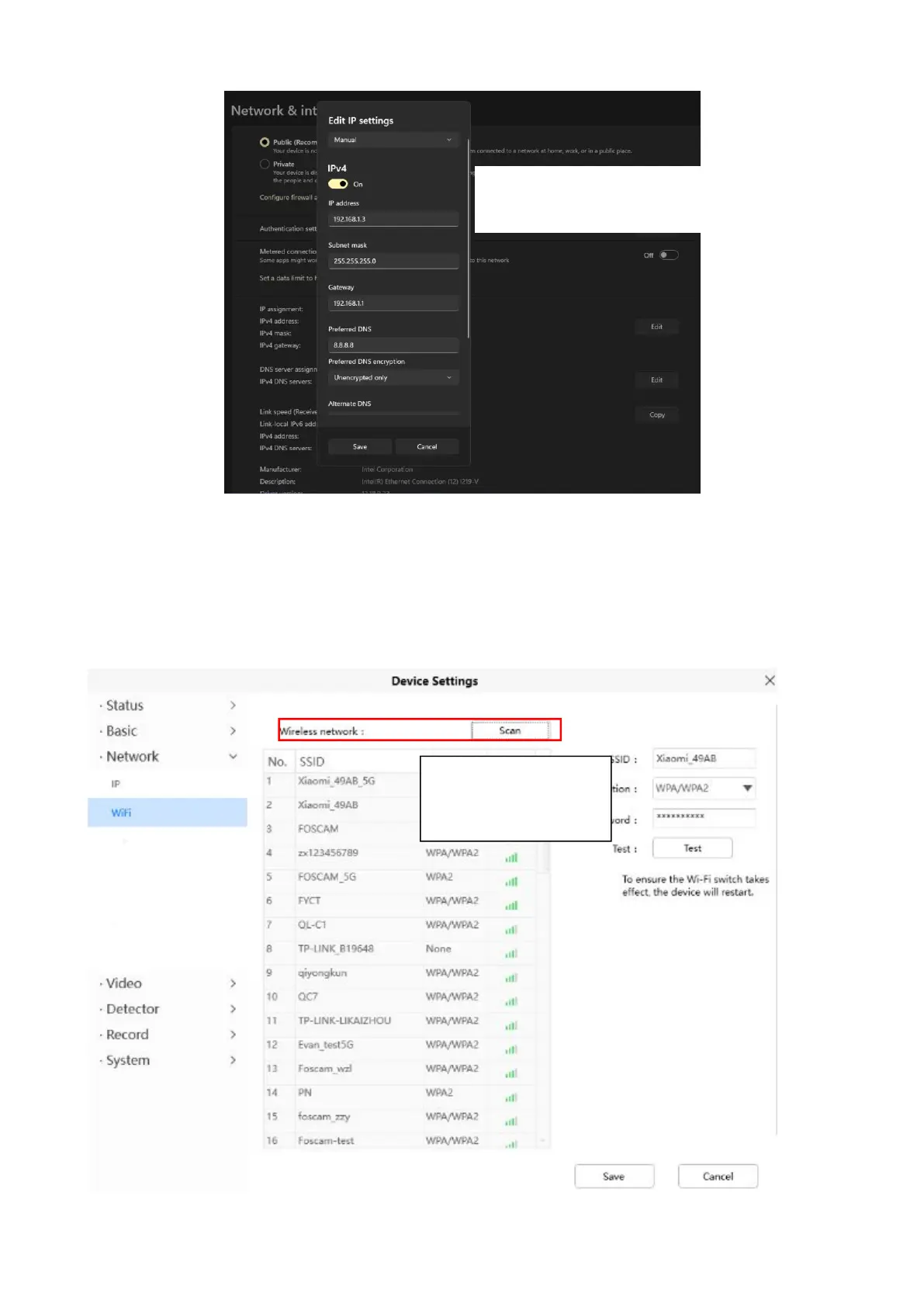 Step 1: Click the Scan button and the camera will detect all wireless networks around the area. It should