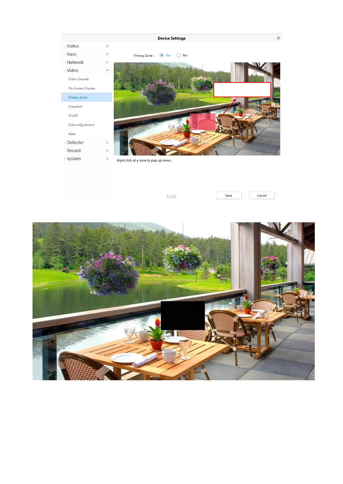 Click Save button and return to the Privacy Zone page, click Save to take effect.
