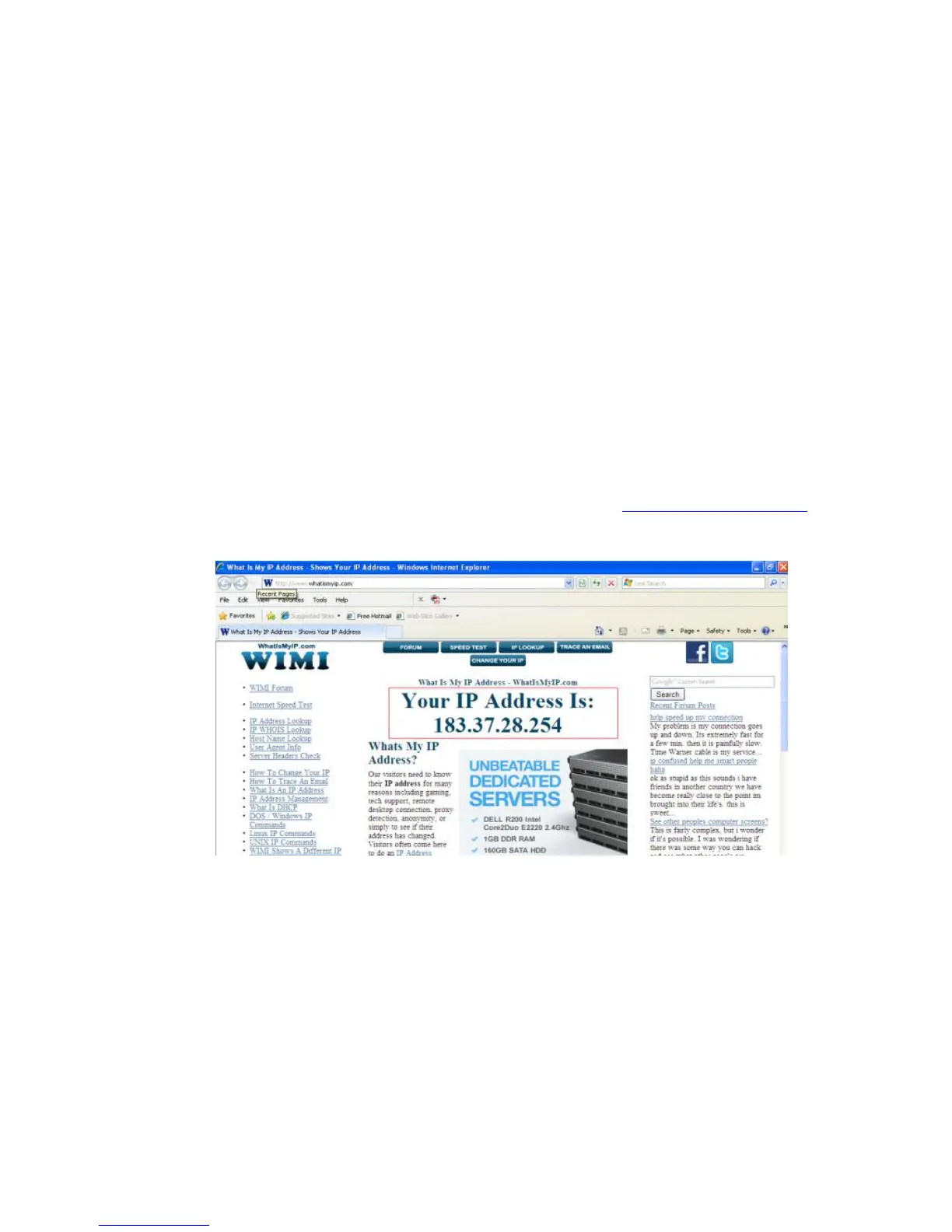To obtain your WAN IP address, enter the following URL in your browser: http://www.whatismyip.com.