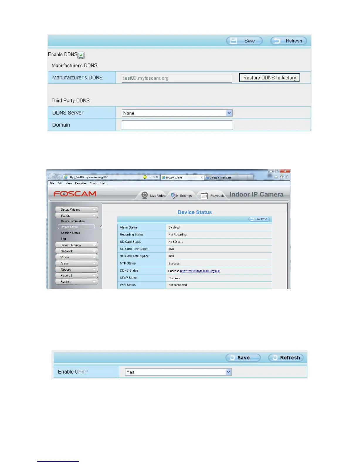 Take hostname test09.myfoscam.org and HTTP Port no. 800 for example, the accessing link of the