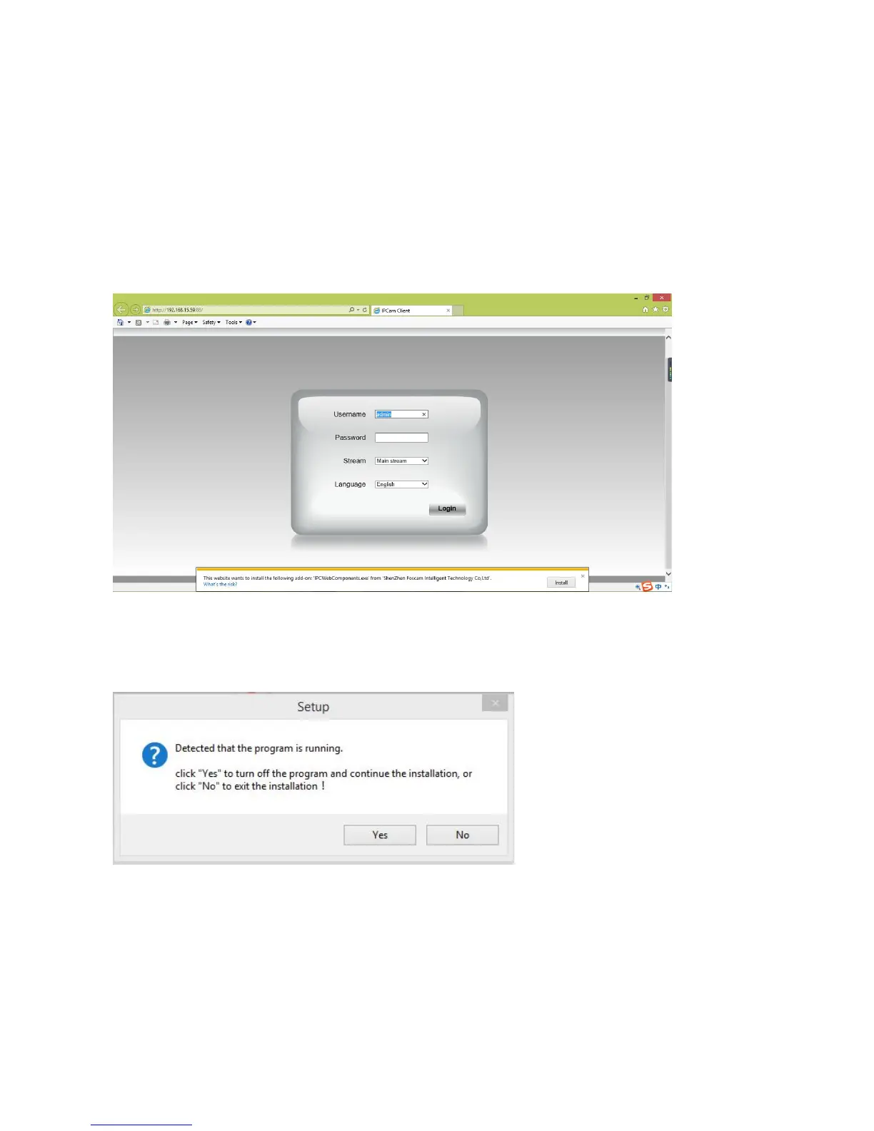 Step 1: User IE browser to log in the camera for the first time, it will prompt to ask your install the plugin