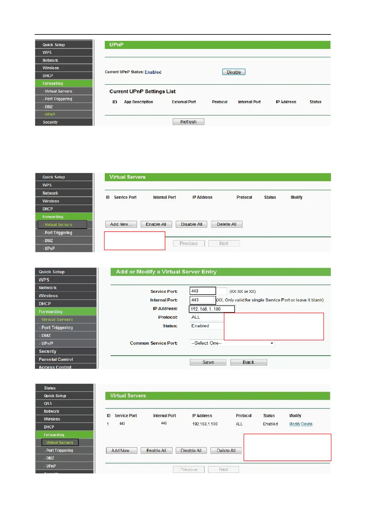 You need to manually add port forwarding, refer to the following steps. You need go to the “Forwarding >