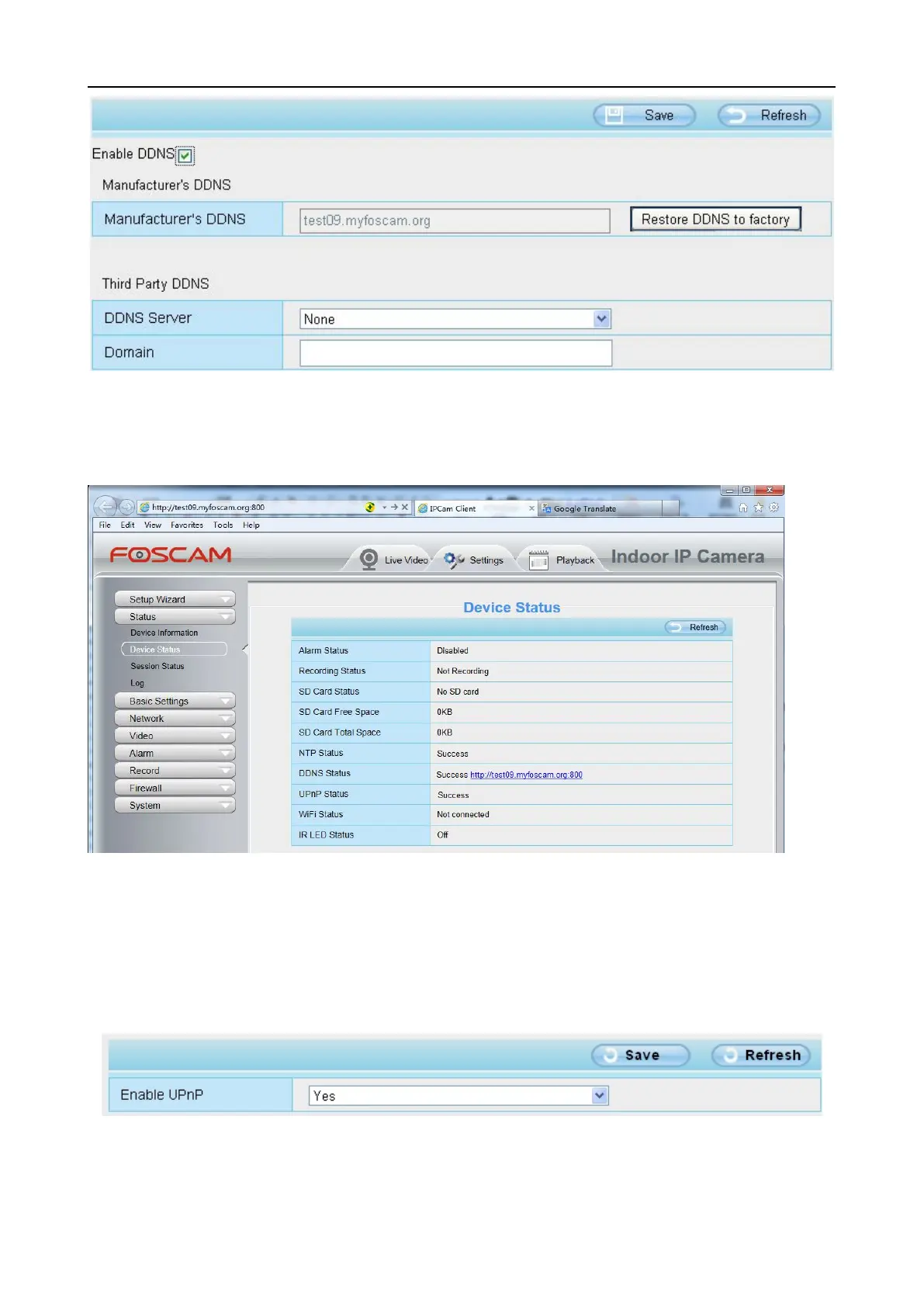 Take hostname test09.myfoscam.org and HTTP Port no. 800 for example, the accessing link of the