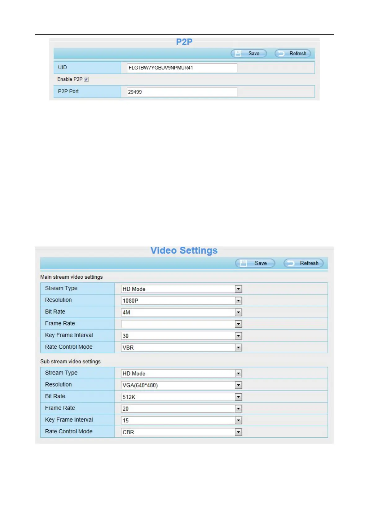 There are two ways to set the stream video settings. They are main stream video settings and sub