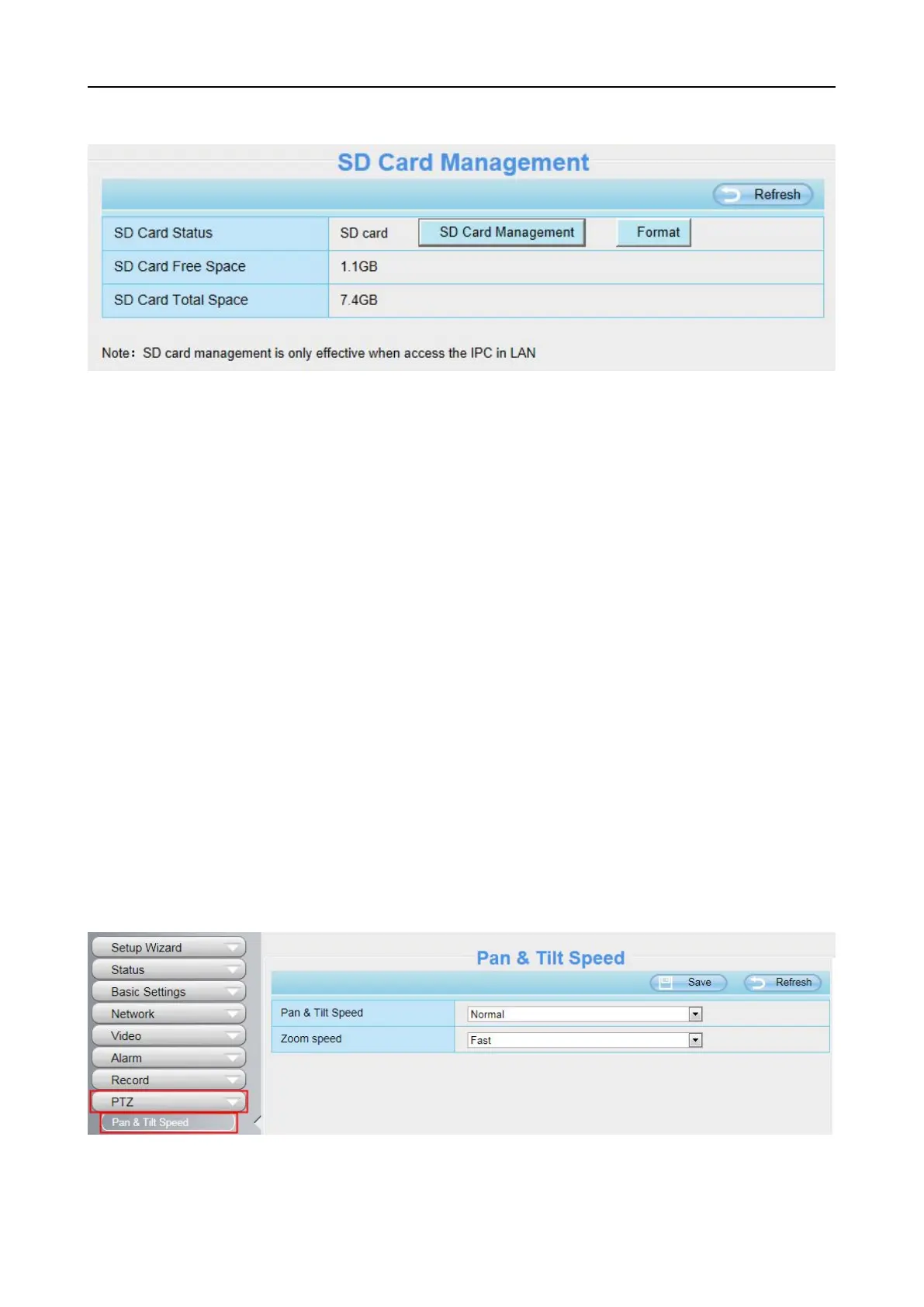 This page will allow you to change the pan/tilt speed and do cruise tracks settings.