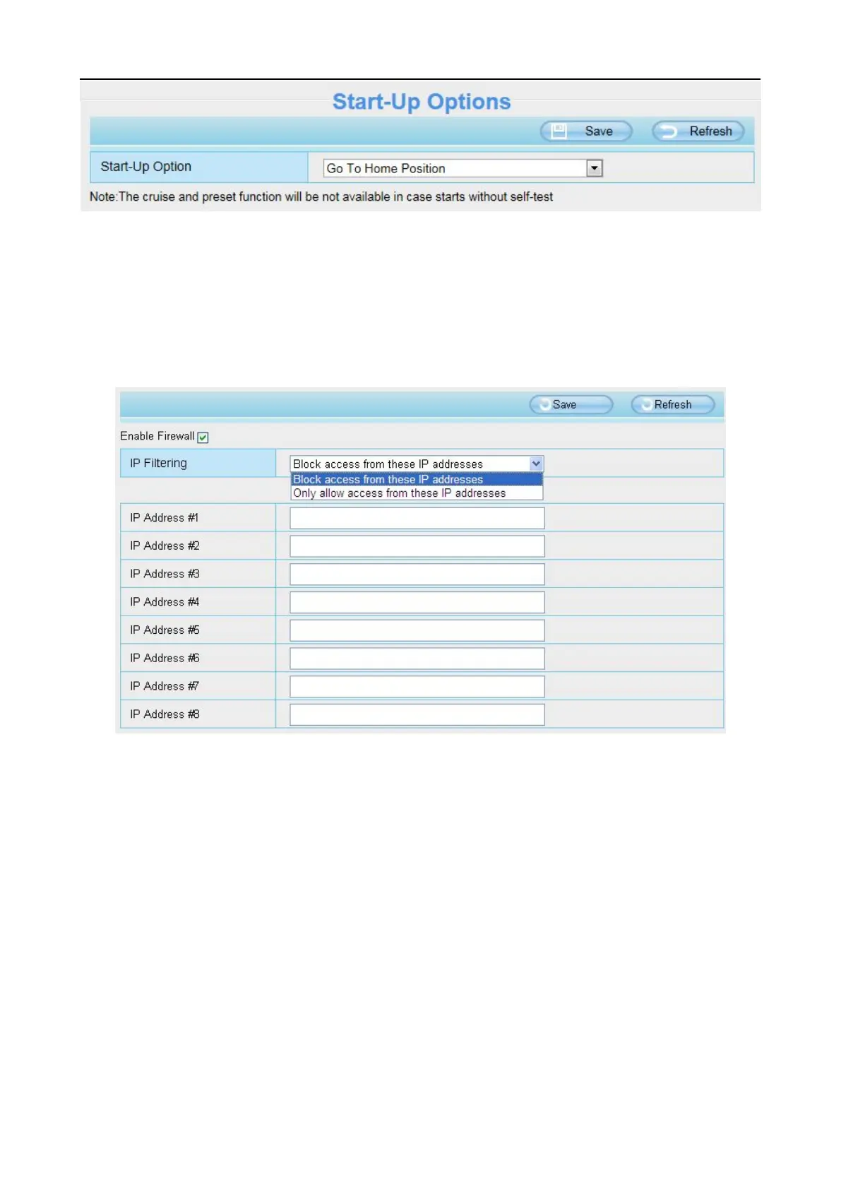 is composed of the following columns: Block access from these IP addresses and Only allow access