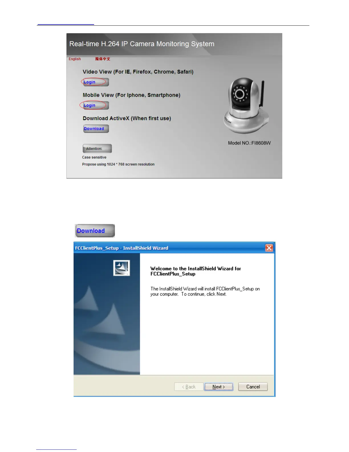 If you use IE, you can download ActiveX from the login UI. If you use Firefox, Google Chrome,