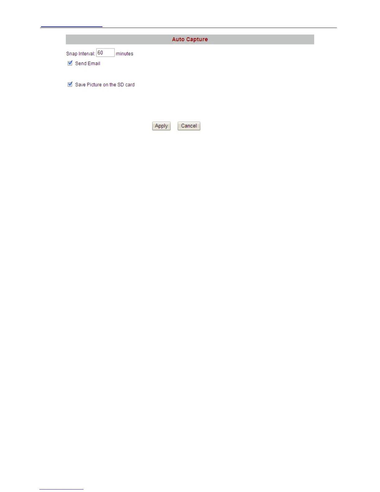 Snap interval: Set snap interval time. The pictures will be stored to the disk you have set (you