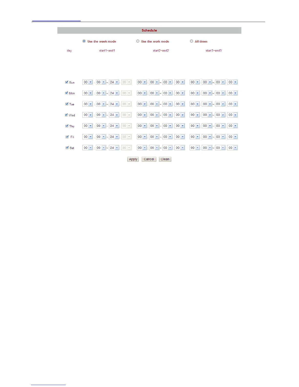 If you want the camera to alarm during a specify time, you can select Use the week mode or Use