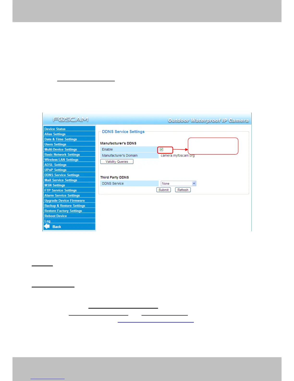 DDNS and enable the Manufacturer ’ s domain name, then click submit.