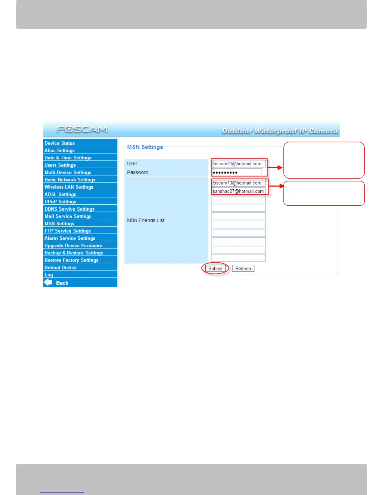 Foscam FI8904W - MSN Setting