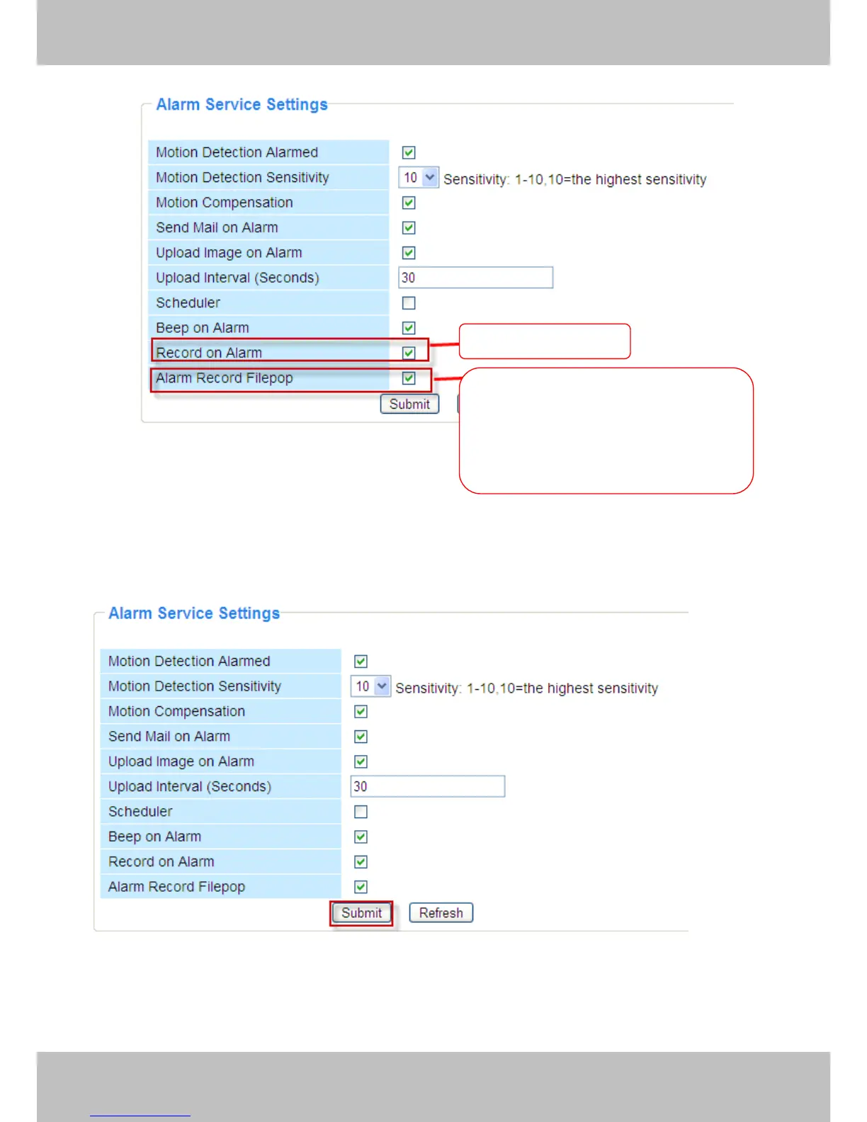following picture. Click Submit and the camera will alarm at any time when motion is detected .