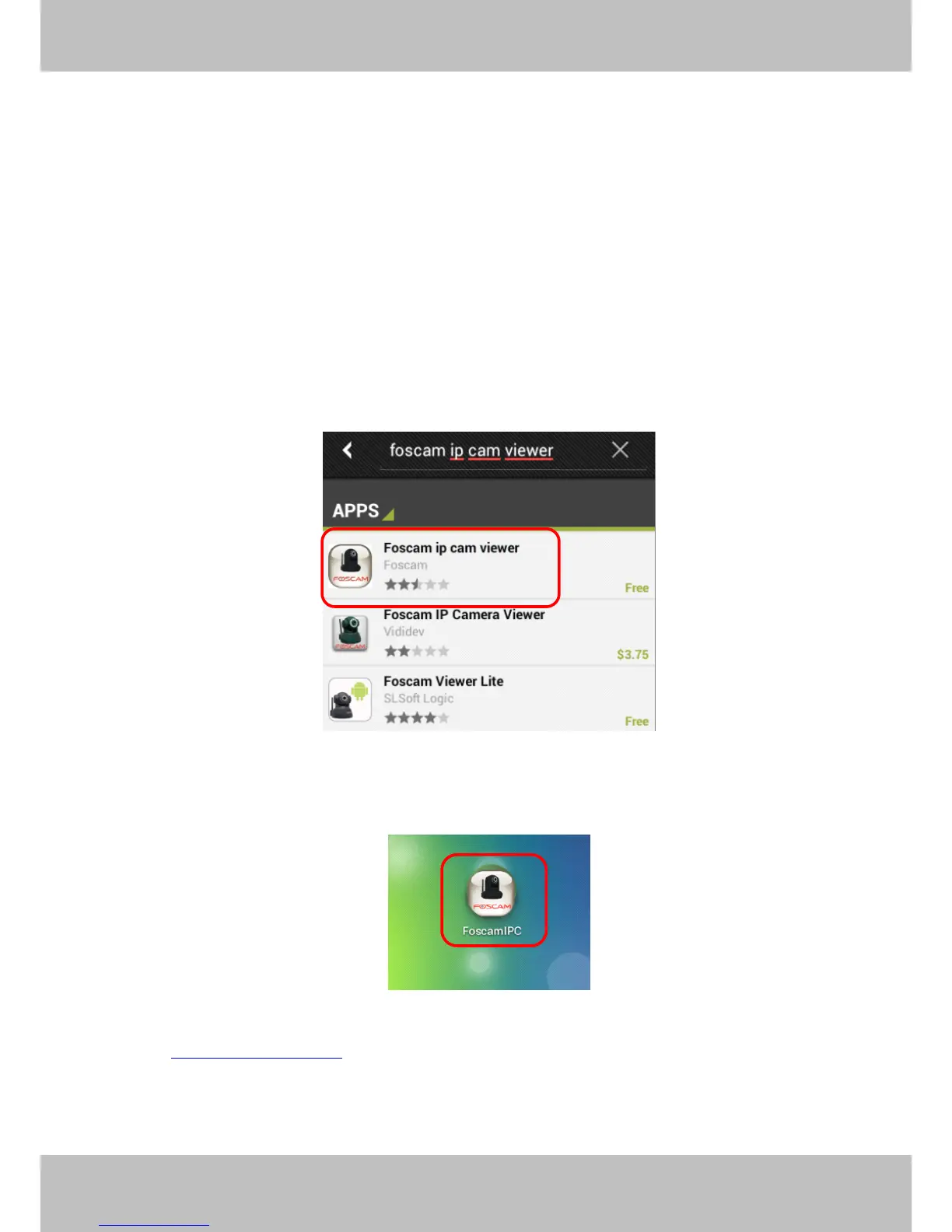 1) Search the APP “ Foscam ip cam viewer ” in the Google Play directly if your cell phone has