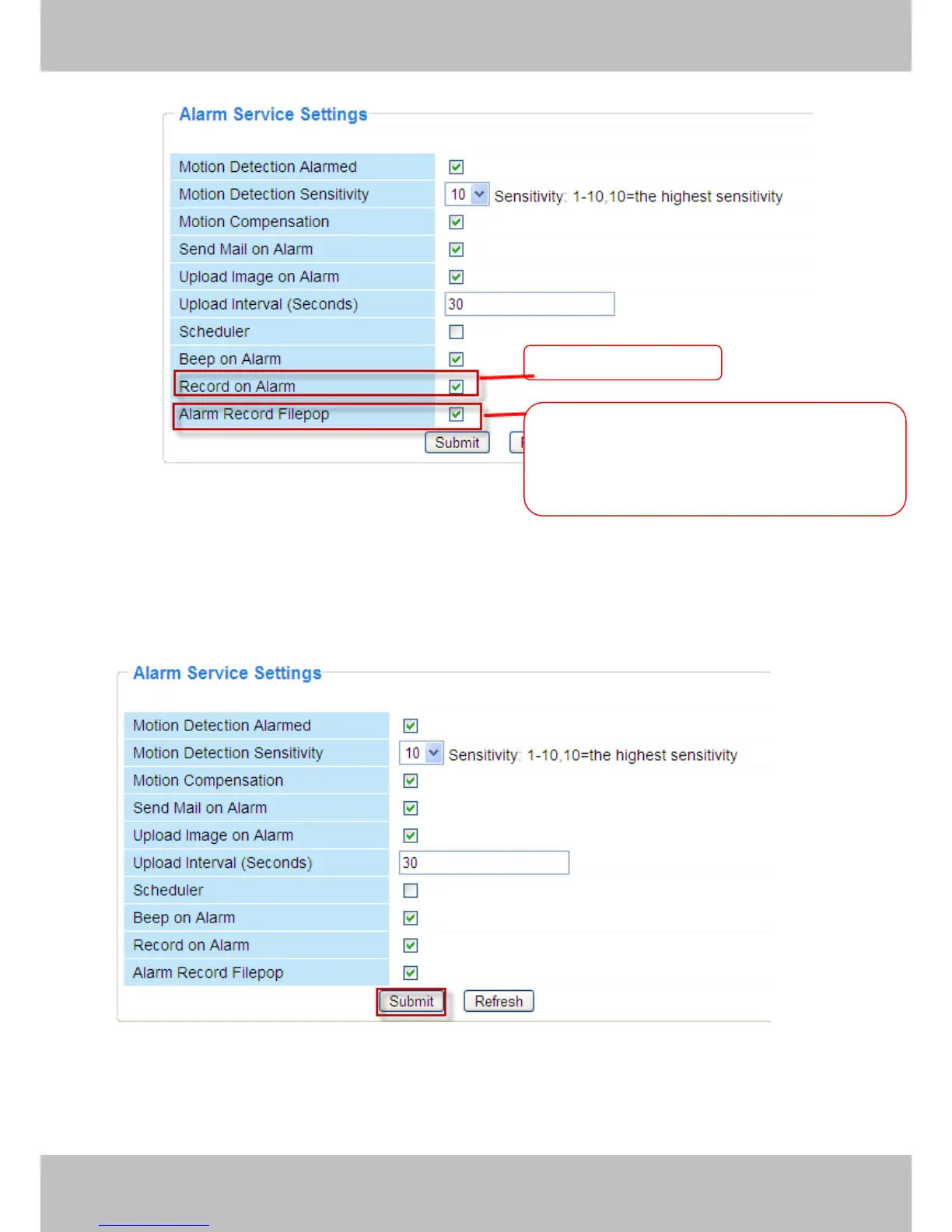 the following picture. Click Submit and the camera will alarm at any time when motion is