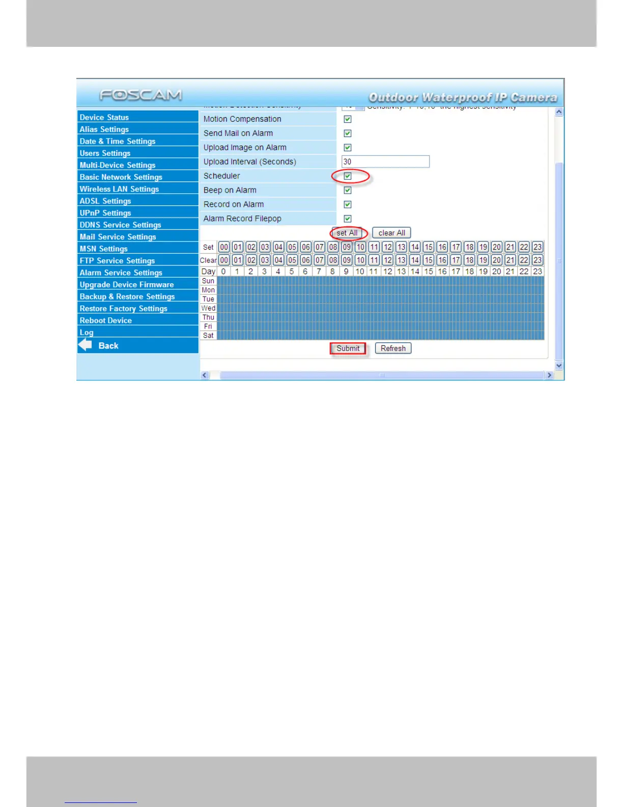 If you want the camera to alarm during set times select Scheduler and set time range.