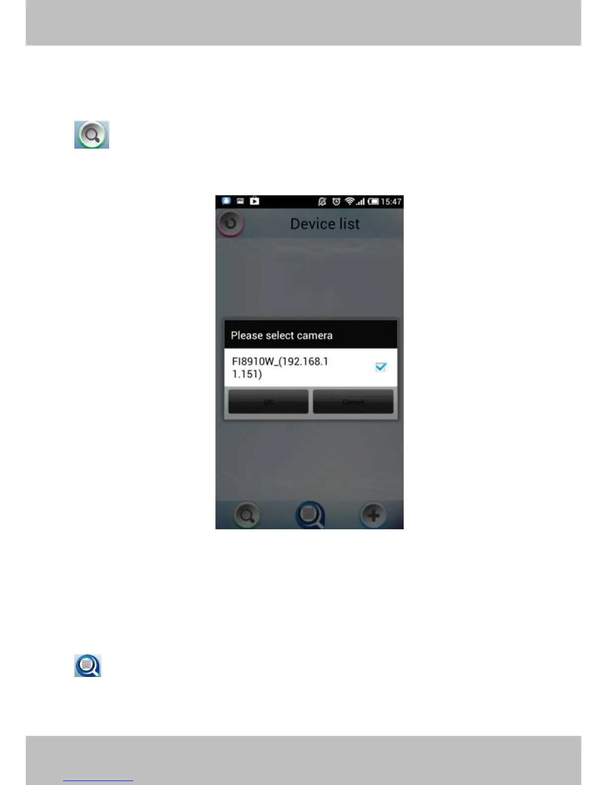 : Click this icon and the APP will search all cameras in LAN automatically. Such as the