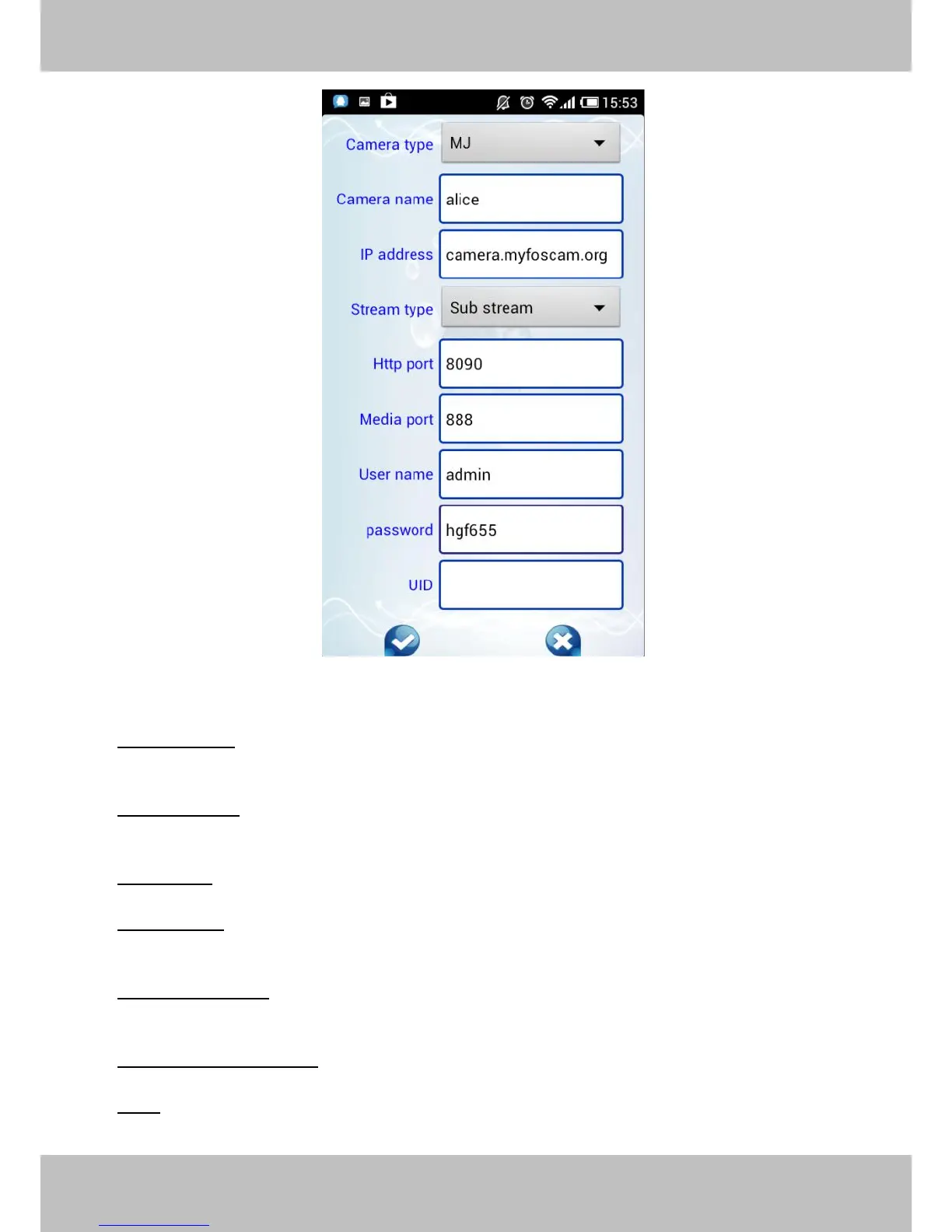 UID: If your camera supports UID, here you may fill in the UID no.. Now FOSCAM camera