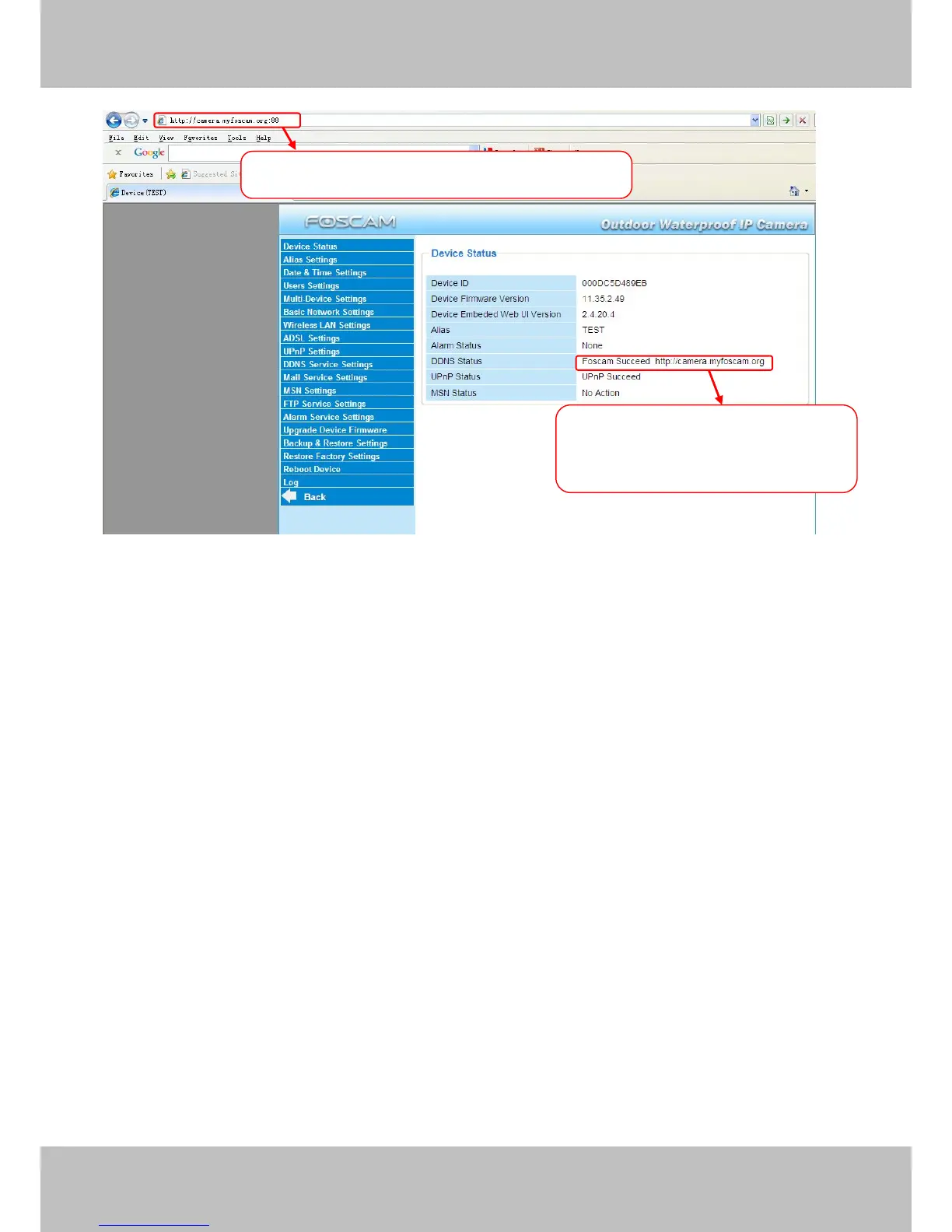NOTE: Here the Host must be entered as the second camera’s DDNS domain name, not its LAN