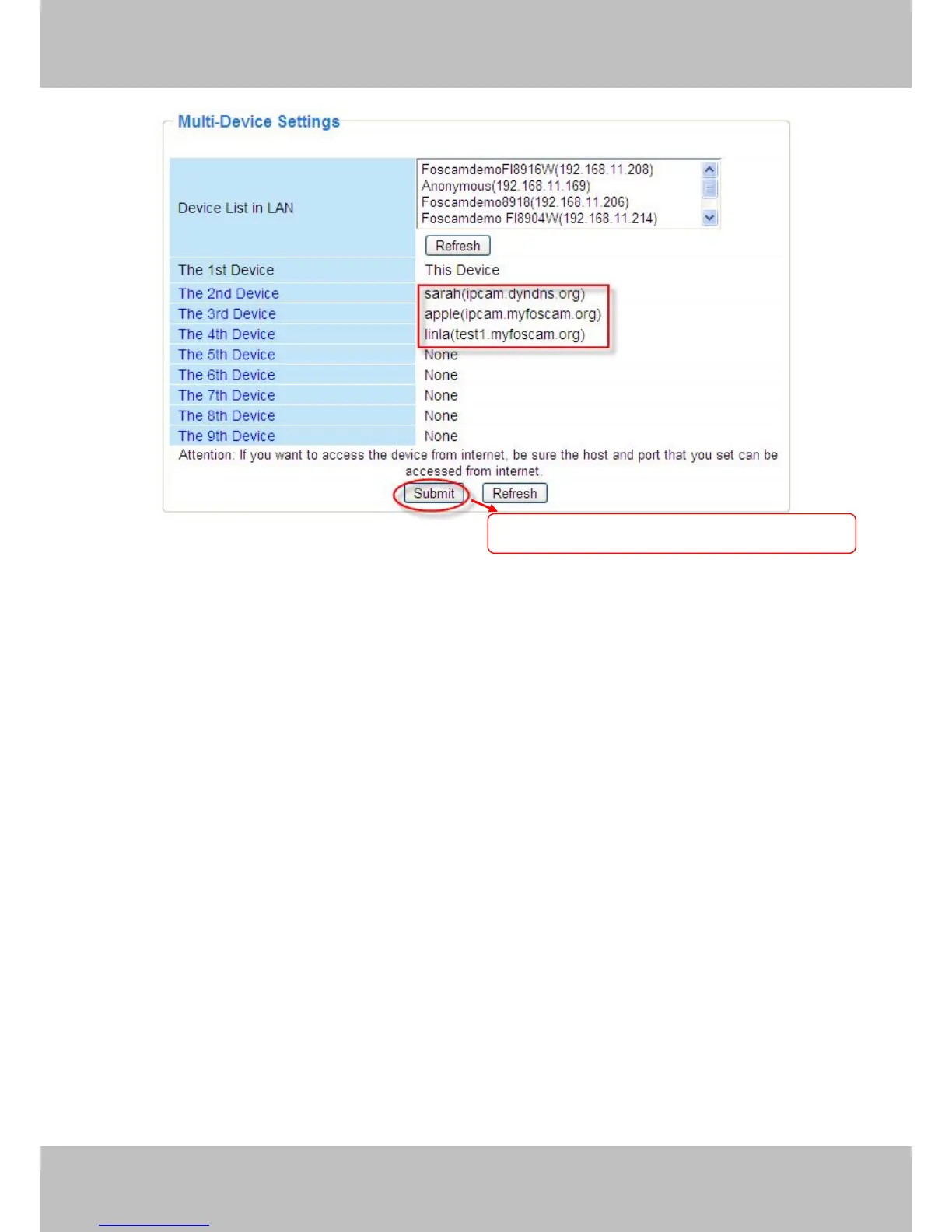 Click submit after finishing all settings .
