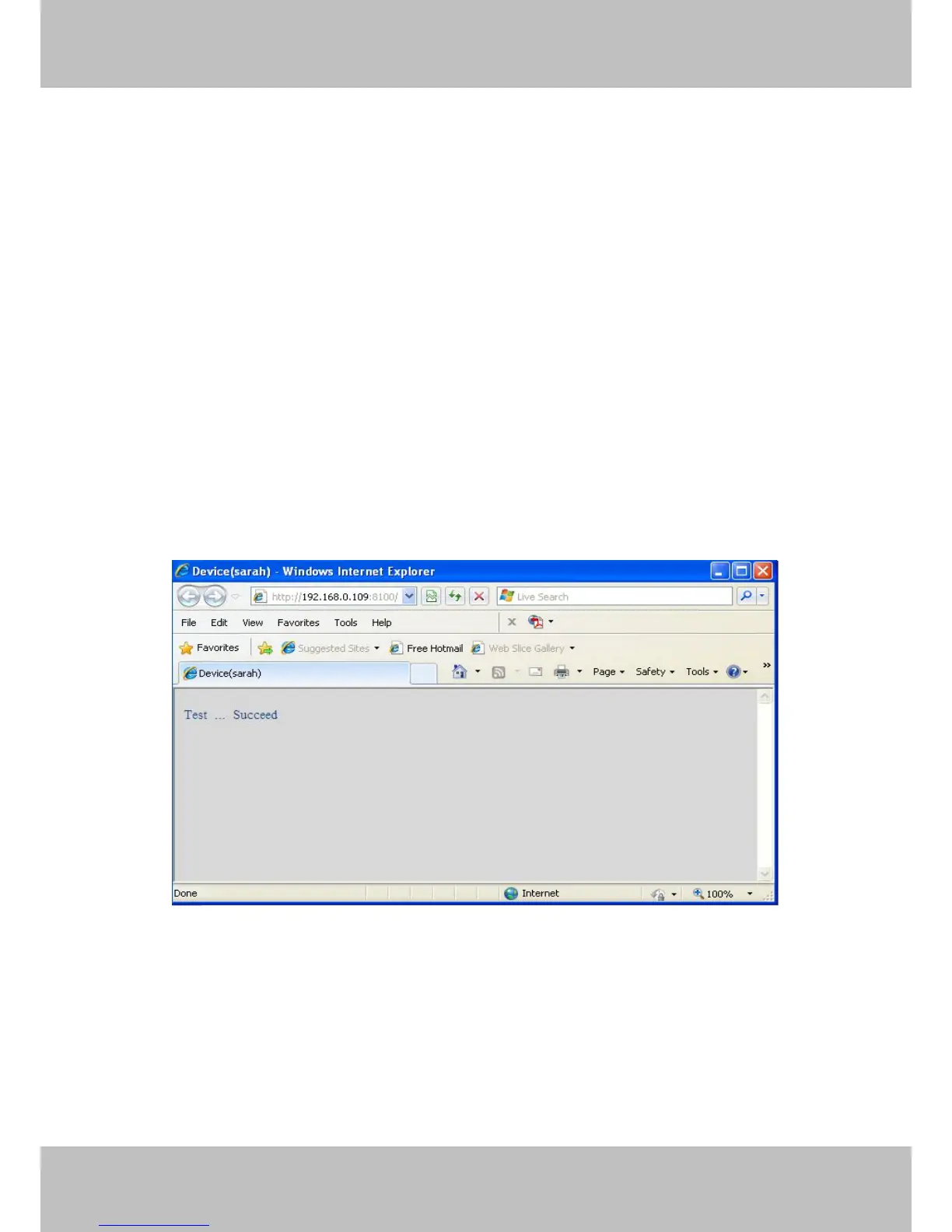 Click Submit to save these settings. Click Test, the following screen displays if successful.